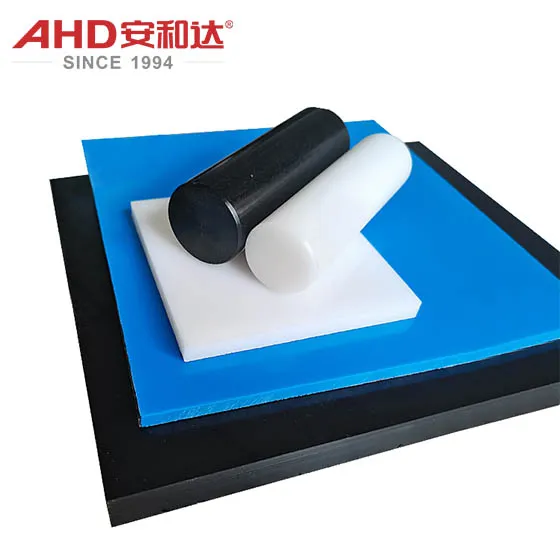 Estructura molecular UHMWPE: polietileno lineal, peso molecular 1 millón-6 millones POM: polioximetileno (cíclico/lineal), cristalinidad 70%-85% Resumen de diferencias clave: UHMWPE se endurece por sus "cadenas moleculares ultralargas"; El POM se ve reforzado por su "alta cristalinidad". Densidad (g/cm³) UHMWPE: 0,92-0,94 (ligeramente más ligero que el agua) POM: 1,41-1,43 (aproximadamente 1,5 veces mayor que el UHMWPE) Resumen de diferencias clave: POM es más pesado Dureza (grado Rockwell R) UHMWPE: 60-70 POM: 115-120 Resumen de diferencias clave: la dureza del POM es el doble de UHMWPE; la "dureza" percibida por los profanos es más cercana a la del POM. Resistencia a la abrasión (pérdida de abrasión, mg/1000 ciclos) UHMWPE: 20-50 (uno de los plásticos más resistentes a la abrasión a nivel mundial) POM: 100-200 Resumen de diferencias clave: La resistencia a la abrasión del UHMWPE es de 3 a 5 veces mayor que la del POM, adecuado para escenarios de fricción extrema. Propiedades autolubricantes (coeficiente de fricción): UHMWPE: 0,05-0,1 (cerca de PTFE/Teflón) POM: 0,1-0,2 Resumen de diferencias clave: UHMWPE no requiere lubricación adicional, lo que lo convierte en la opción preferida para "cojinetes sin aceite". Resistencia al impacto (resistencia al impacto con muesca, kJ/m²) UHMWPE: 100-300 (mantiene la tenacidad incluso a -40 ℃) POM: 6-10 (relativamente frágil) Resumen de diferencias clave: La resistencia al impacto del UHMWPE es de 10 a 30 veces mayor que la del POM; es menos propenso a romperse por caídas o impactos. Resistencia al calor (HDT@1.8MPa, °C) UHMWPE: 80-100 POM: 110-130 Resumen de diferencias clave: POM es más resistente al calor y puede soportar ambientes superiores a 120 °C durante períodos cortos. Resistencia química UHMWPE: resistente a la mayoría de los ácidos y álcalis (excepto ácidos oxidantes fuertes), resistente a disolventes orgánicos POM: resistente a disolventes orgánicos, pero susceptible a ácidos y álcalis fuertes Resumen de diferencias clave: UHMWPE es más adecuado para entornos químicos/marinos Estabilidad dimensional (absorción de agua, %) UHMWPE: <0,01 (prácticamente sin absorción de agua) POM: 0,2-0,3 (ligera absorción de agua) Resumen de diferencias clave: UHMWPE no se deforma después del moldeo, adecuado para piezas de alta precisión. Propiedades eléctricas (rigidez dieléctrica, kV/mm) UHMWPE: 45-60 POM: 18-22 Resumen de diferencias clave: UHMWPE tiene propiedades de aislamiento superiores La siguiente imagen muestra una lámina de AHD UHMWPE.